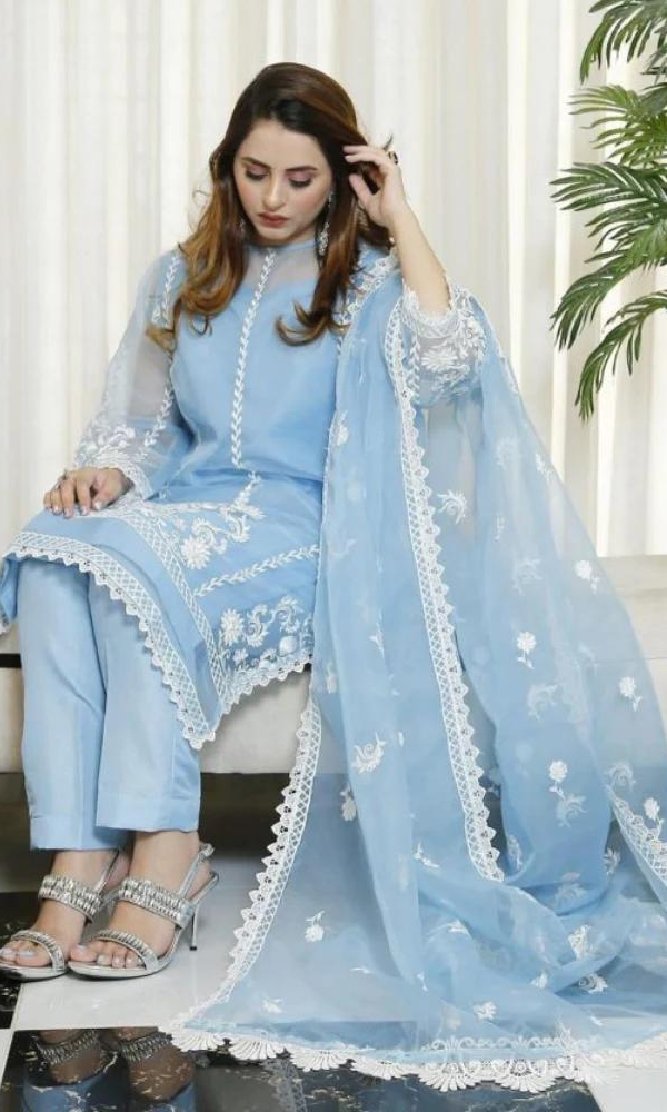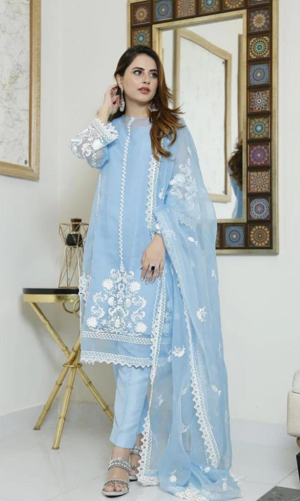 Nadia Farooqi - 4PC (Unstitched) Organza Embroidered Shirt With Organza Embroidered Dupatta - GSF055